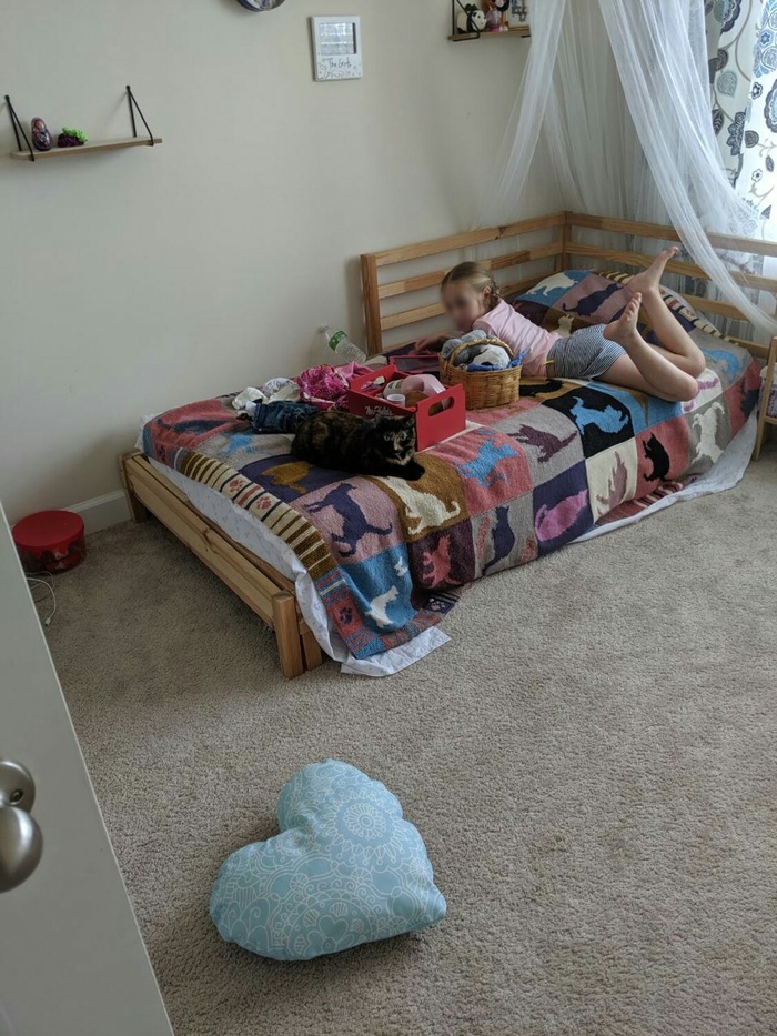 - Неть. Ето когда она яблоков сделала кусь и гномики её красиво сложили в стекляни гроп.