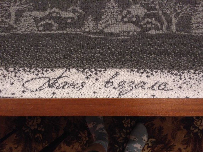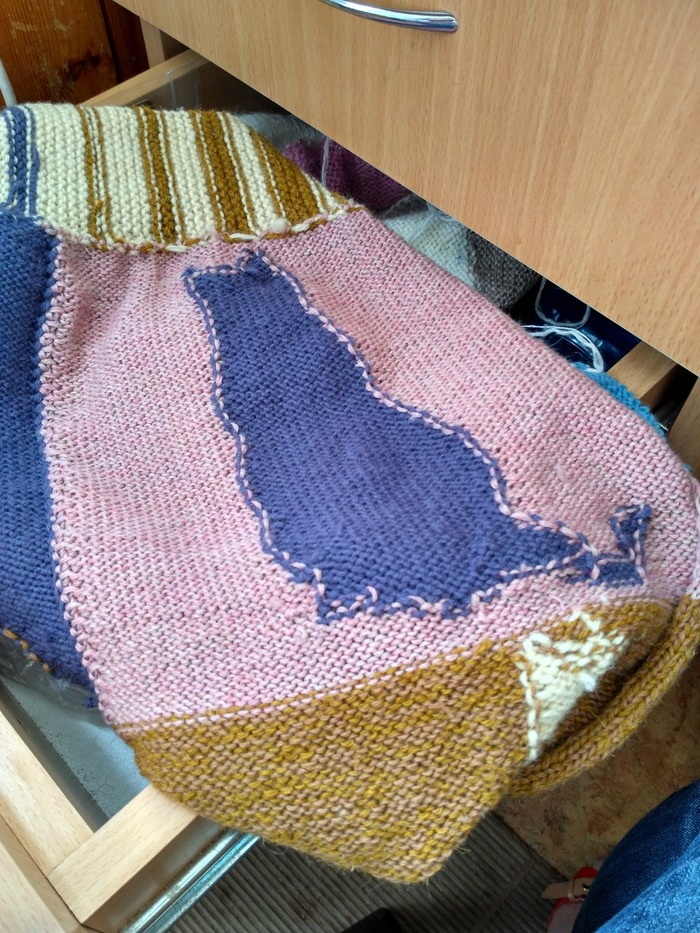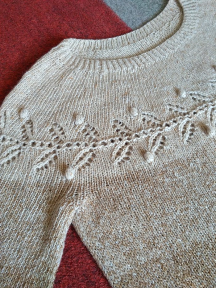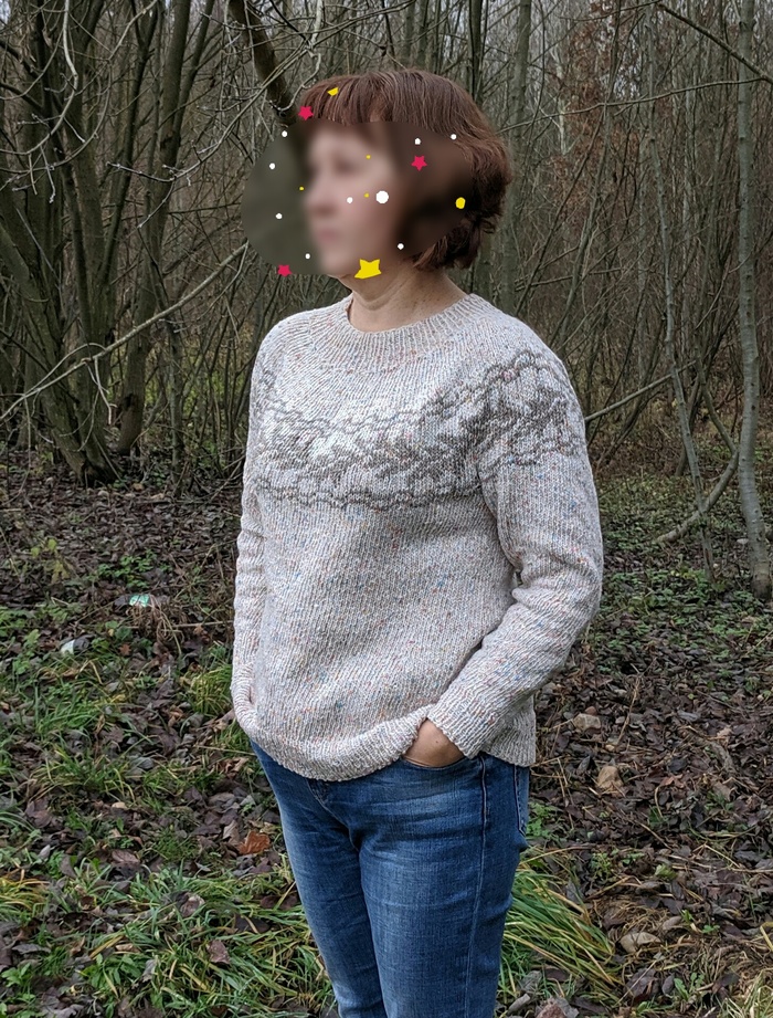 5. Свитер для себя. Тоже итальяский твид, круглая кокетка, сверху вниз, жаккард. Довольно быстро, дней за 12 что ли.