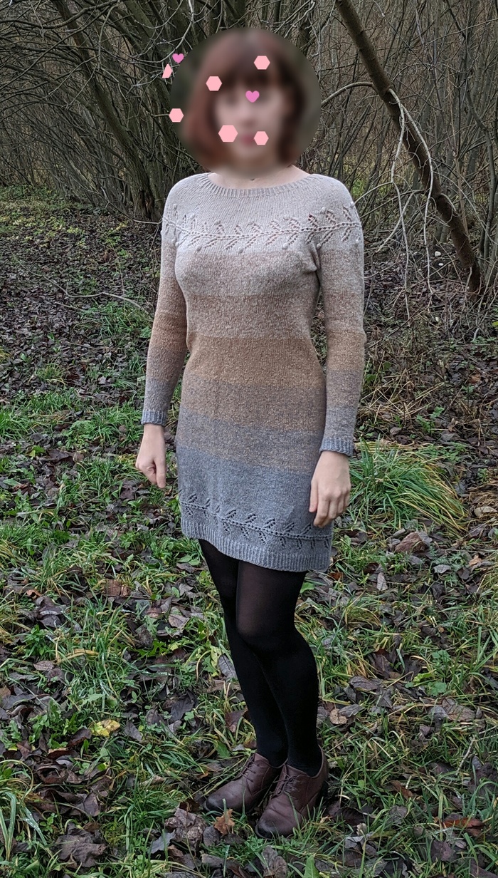 4. Платье с градиентом из итальянской тонкой твидовой пряжи, тоже сверху вниз, с круглой кокеткой. Для дочки. 3 недели вязала.