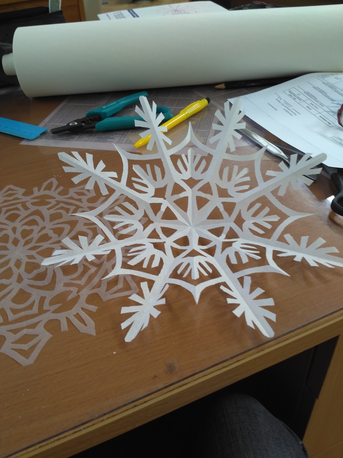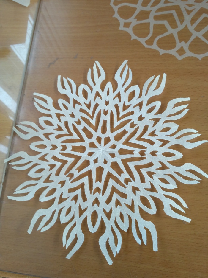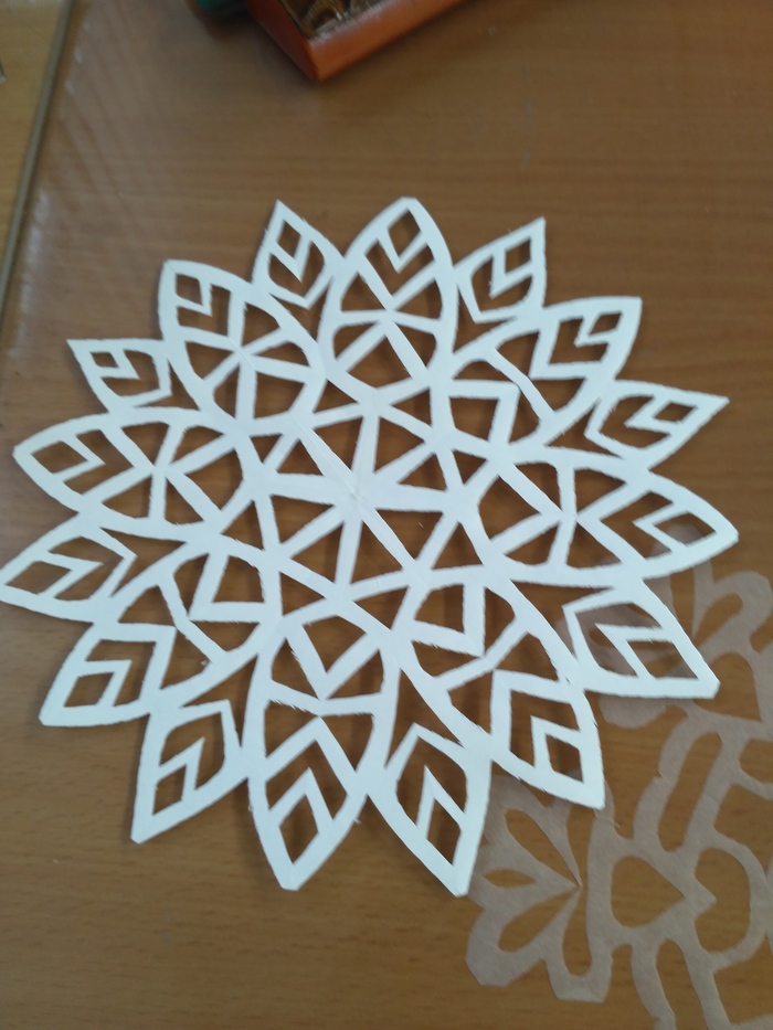 Ещё важно делать максимально точными сгибы, это тоже сильно влияет на симметрию снежинки и уменьшает риск отрыва мелких деталей в особо тонких местах.