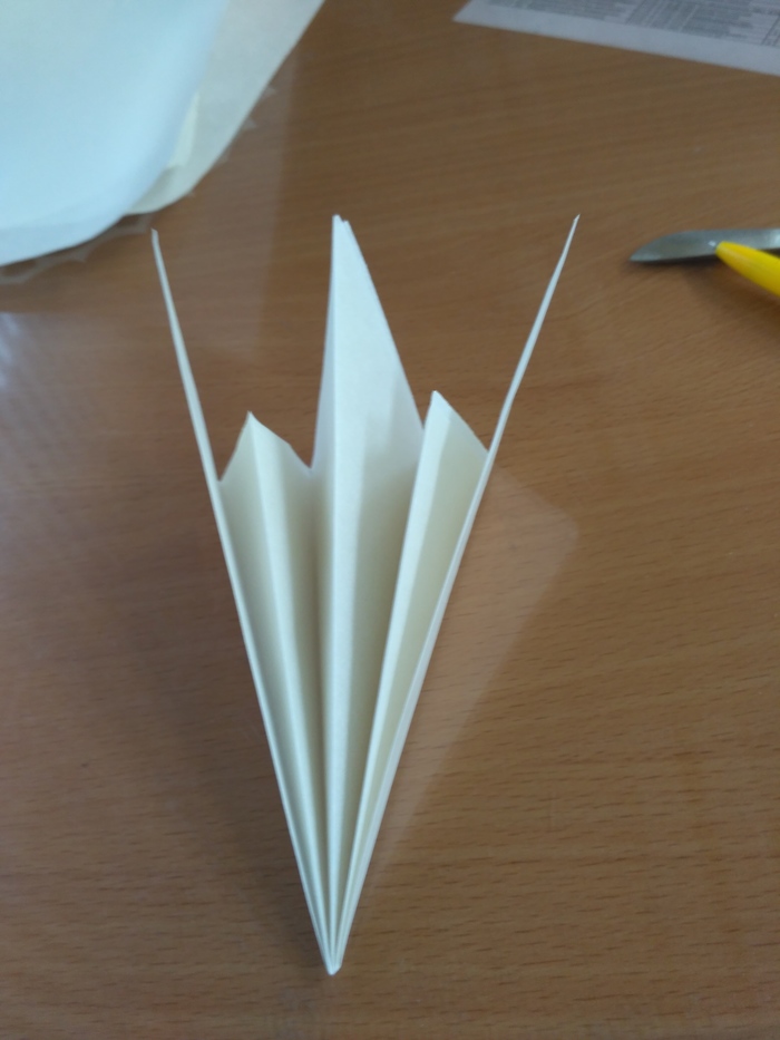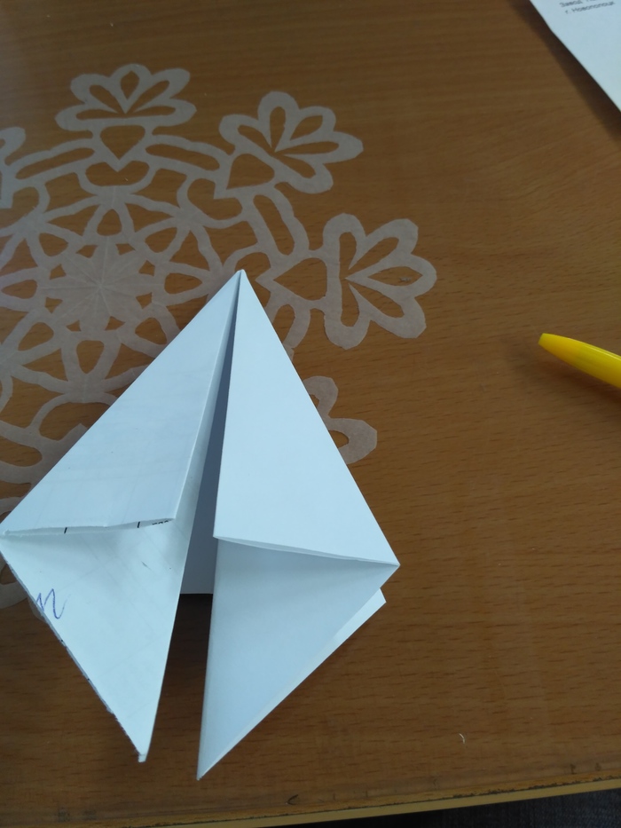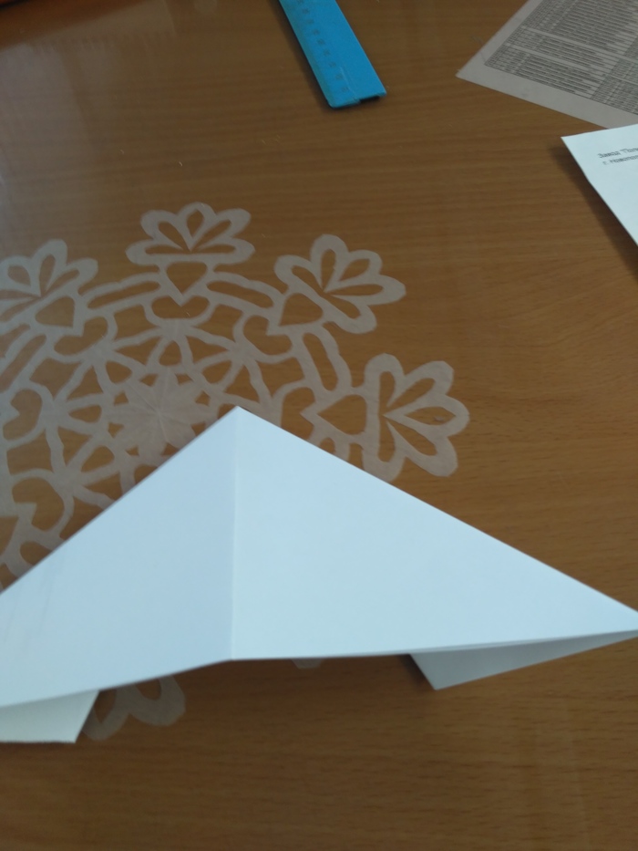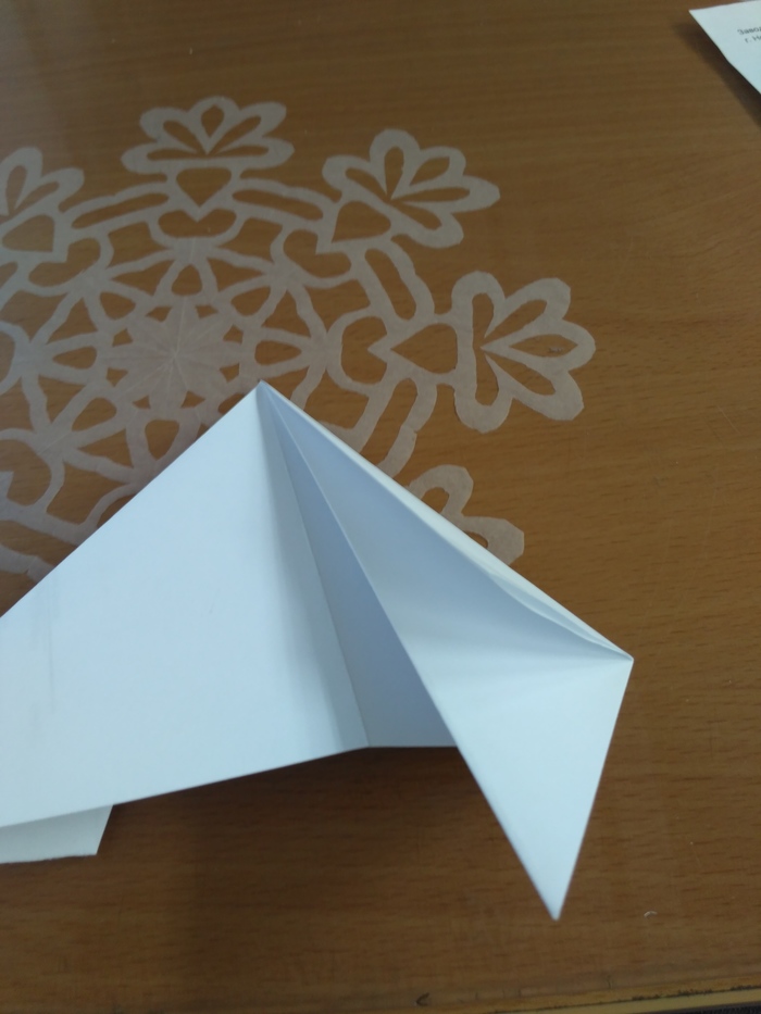 Вот так выглядит вырезанная, но ещё не развернутая снежинка.