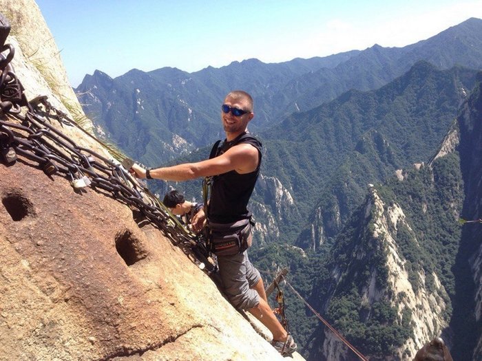 Путешественник утверждает: и на ближних, и на дальних трассах, в разных городах и странах ему везло на хороших людей. Хотя — было дело! — под Ростовом ограбили. Прыснули в лицо дихлофосом, подрезали палатку и унесли все самое ценное. Но случалось и обратное: незнакомцы выручали с деньгами, причем не раз. Китайцы, кстати, проявили интерес к фотографиям Максима — эта помощь в дороге тоже оказалась очень кстати. В память о Поднебесной в его архиве есть немало захватывающих кадров. В их числе — рисковая прогулка по так называемой «тропе смерти»: пешей дороге на горе Хунань, сделанной из зависающих над пропастью узких досок.