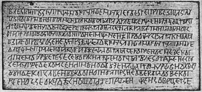 Это настолько махровая фальшивка, что лень объяснять. Ладно. Начнем с истории публикации. Напечатал текст некто юрий Миролюбов, русский писатель-эмигрант, по странному совпадению, писавший до этого псевдоисторические сочинения. Списал текст он, якобы, с неких деревянных дощечек, с вырезанными текстами. Дощечки подогнал ему некий полковник Федор Изенбек, который, якобы, нашел их в разоренной красными усадьбы, неизвестно чей, при размытых обстоятельствах. То есть, количество передаточных звеньев уже намекает. Это круче, чем "Рабинович по телефону напел". Где же дощечки? А нету, утеряны, есть только фотка одной.