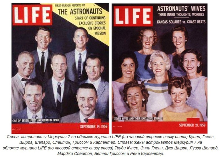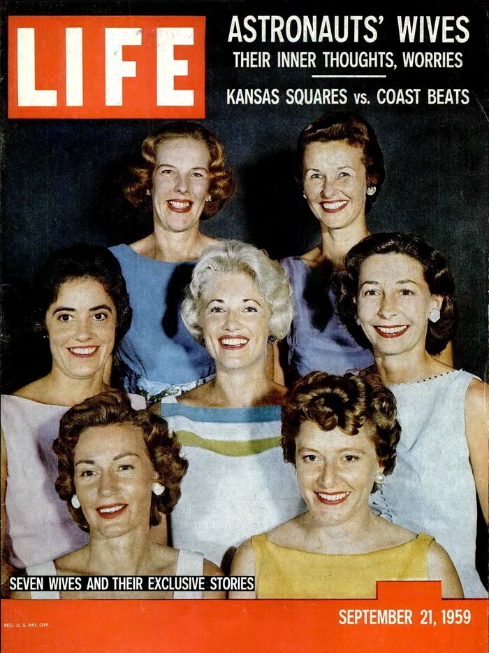 Раз уж речь зашла о делах семейных, стоит сказать несколько слов о женах астронавтов. Журнал “Лайф”, с которым НАСА заключило эксклюзивный контракт, сразу вслед за номером об астронавтах выпустило номер “Жены астронавтов”, целиком им посвященный.
