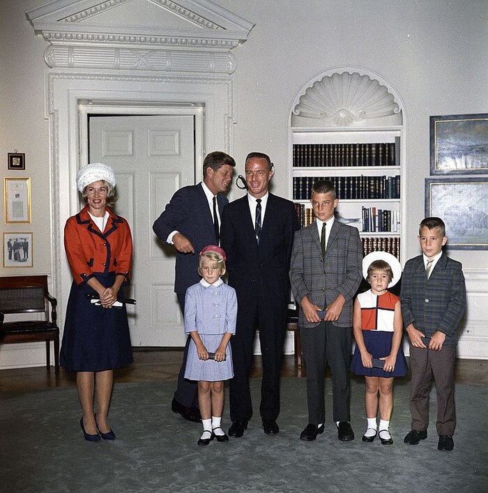 Джон Гленн станет первым американцем, совершившим орбитальный полет. В 1964 году покинул космонавтику, занялся политикой, стал сенатором. Будет выдвигаться кандидатом в вице-президенты и президенты. В 1998 году второй раз слетает в космос в возрасте 77(!) лет. В политике защищал космические и образовательные программы. Скончался в возрасте 95 лет. С женой Энни прожили в браке 73 года. Двое детей. Был масоном.
