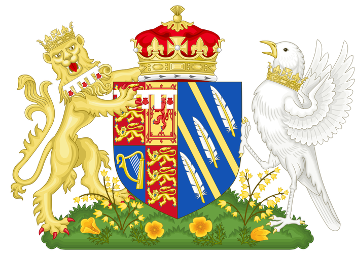 В день свадьбы Королева Елизавета 2 пожаловала принцу Гарри и его жене Меган титул. Так они стали герцогом и герцогиней Сассекскими (в старой транскрипции Суссекскими). 26 мая 2018 года у молодой семьи появился свой герб. "Под щитом на зеленой траве можно увидеть желтые маки - официальный цветок штата Калифорния" - BBC