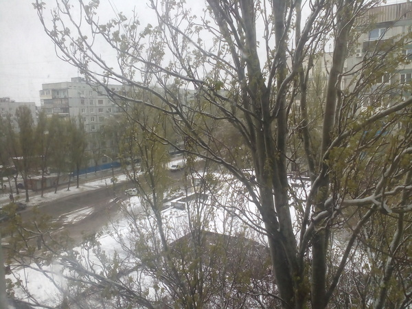 Часто вижу здесь посты, что мол снег в Питере всё не растает, так вот у нас уже было тепло, у нас уже всё зелено, а тут вдруг бац и снег, так что пускай лучше поздняя весна, чем теперь её полное отсутствие. И да - деревья были в цвету - на фрукты в этом году можно не рассчитывать :-(