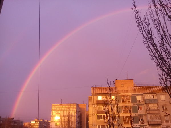 4 TheBlackFox А у нас радуга через всё небо 9 лет назад Показать полностью 3 [моё] Радуга Небо Запорожье Дождь Солнце Закат