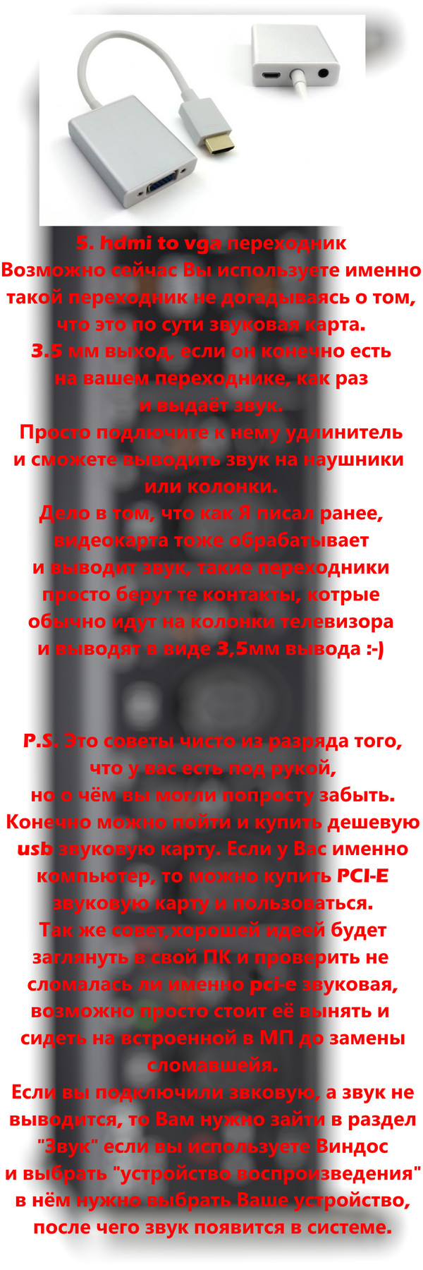 TheBlackFox Что делать, если сломалась звуковая карта 9 лет назад Я дико извиняюсь за непропечатки и опечатки, клавиатура работает не очень хорошо, а заменить нечем :-( Показать полностью 3 [моё] Звуковая карта Windows USB HDMI Что делать Если сломалась звуковая карта Длиннопост