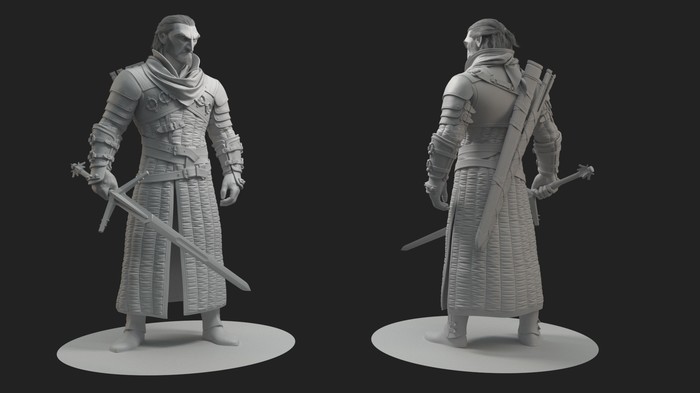 Вид сзади (по мне, так отдает вообще скриншотом из игры, настолько удалось ей проработать броню и мечи)