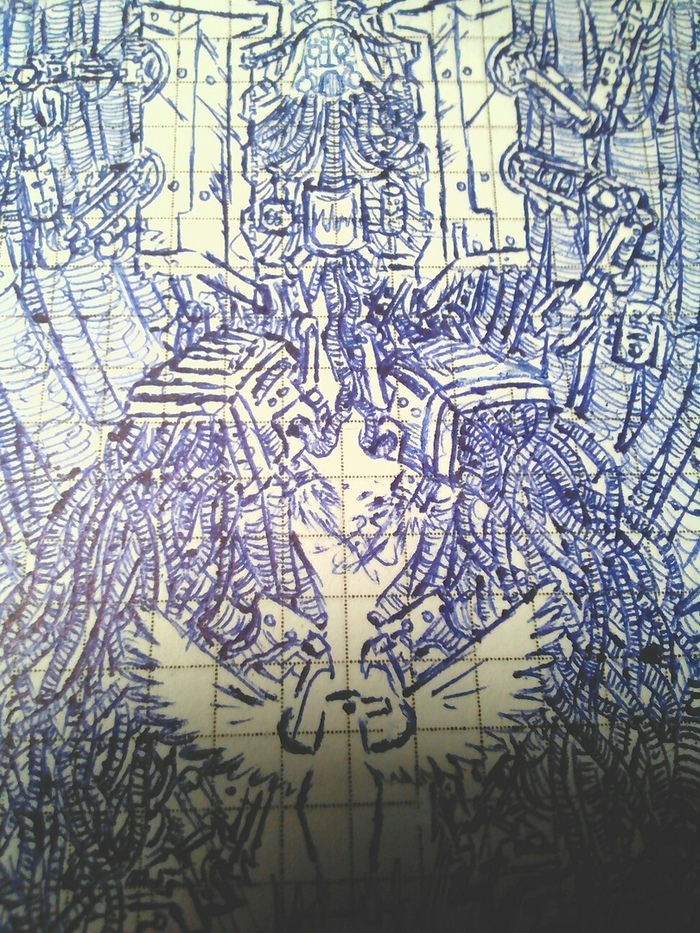 TheVandoGamer Рисунки мои конешн на любителя) Рисунок шариковой ручкой. Золотой Трон и Император на нем. Всюду сервиторы и провода) 6 лет назад Показать полностью 3 [моё] Хаос Warhammer 40k Рисунок Учусь рисовать Длиннопост