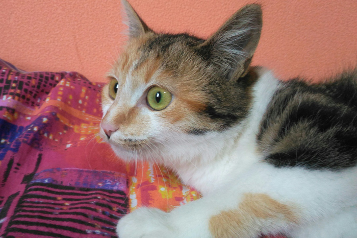 В общем я ищу для этой красотки заботливых, любящих и терпеливых хозяев, желательно в квартиру без выгула на улице. Могу помочь в будущем с оплатой стерилизации, с лотком\мисками\кормом на первое время и с доставкой кошки на дом)