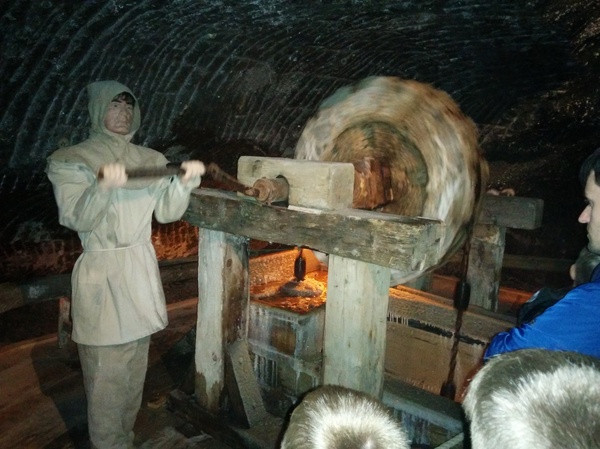 Шахте не одно столетие и добыча соли в ней шла в ногу со временем. Тут работали и деревянные телеги с конями и современная техника. Соль тут добывали около 7 веков. Первые лестницы выдалбливали прямо в породе.