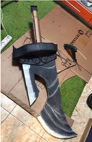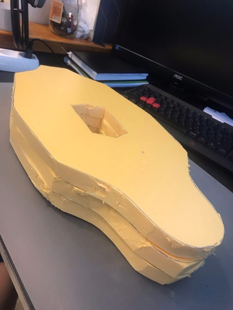 Собирала навершие меча изначально из пеноплекса, но после своего решения разместить в нём батарейки, пересобирала из евы вновь.