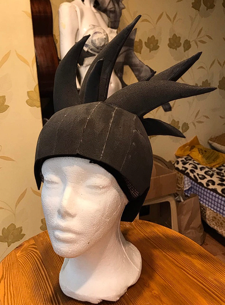 Далее делала аксессуары для парика, так как планировала следующим этапом сделать укладку. Все сделано из евы. Рог пересобирался из пеноплекса. Покрывала все глянцевым лаком.