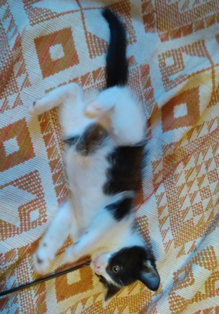 И вот мы всей семьёй собрались, взяли толстые рабочие рукавицы, крепкую переноску и отправились на охоту за котятами. Они оказались очень дикими и ужасно голодными, жадно хватали корм и отбивались смертным боем от наших попыток их поймать, особенно Зумба. В деле ловли котов мы не привыкли отступать, и, не без труда, запихали в переноску всех четырёх котят, а маму кошку забрала женщина, которая все это и затеяла, позже стерелизовала её и оставила у себя во дворе. А мы потихоньку социализировали котят, приучили к лотку и начали пристраивать в добрые руки. По факту мы раздали всех котят, но Зумбу нам вернули, оказалось, что эта кошка уже выбрала себе хозяйкой меня, и не смогла прижаться в другой семье. Люди честно в течение двух недель пытались наладить с ней контакт, но ничего не вышло. Так она и осталась с нами, очень преданная и всем сердцем любящая меня кошка.