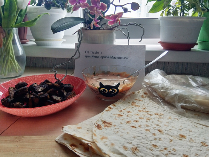 А пока приготовим всеми любимый кетчунез. Майонез + кетчуп+ немного зелени :)