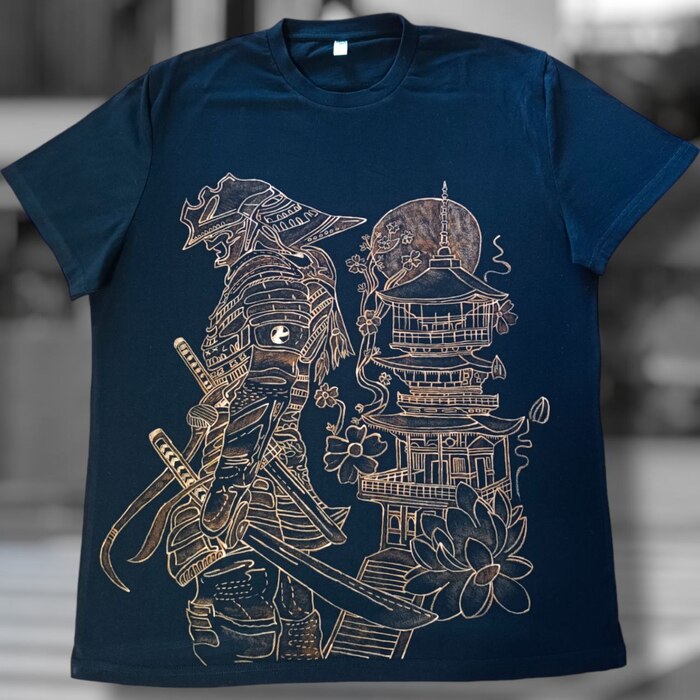 Весь этот волшебный процесс начинается с создания эскиза и его переноса на футболку.Когда размер и расположение рисунка устраивает я приступаю к следующей стадии.