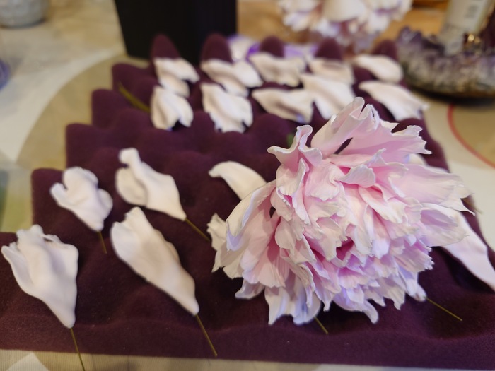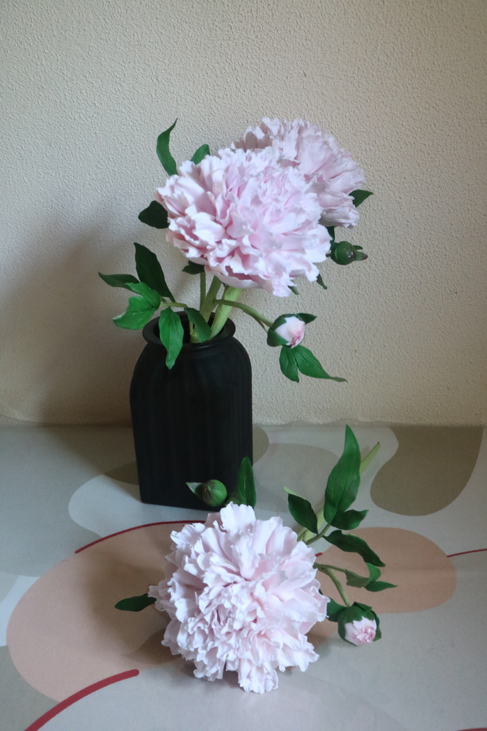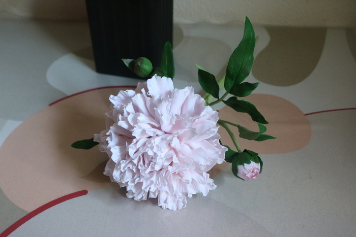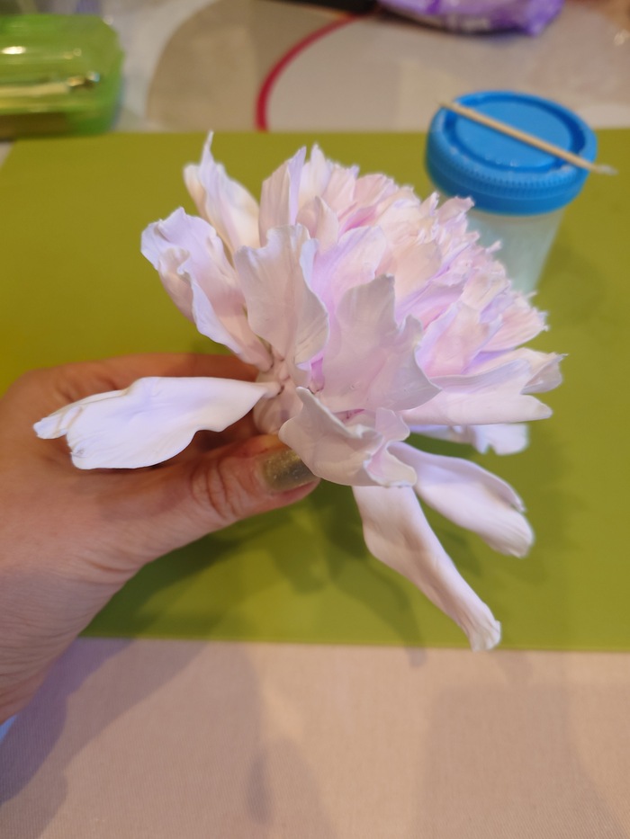 Лепила пион, это последняя на сегодня работа. Материал: японская полимерная глина. Сохнет на воздухе; очень приятная тактильно и в процессе лепки, и после высыхания. Также используется проволока разной толщины, акриловые краски.