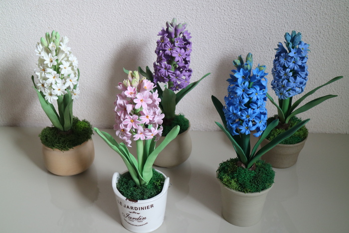 И гиацинты разноцветные, мои любимые белый и розовый, с синими оттенками я не совсем довольна результатом: