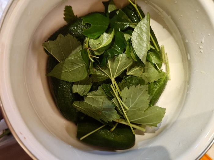Заметка 2. Если на поверхности кастрюли появились пузырьки/пена - это нормально. Если пены много, то см. Заметку 1, скорей всего или очень жарко или огурцы были мягкие. Но и тут результат можно спасти: сливаем рассол, кипятим, огурцы промываем, заливаем заново, зелень выкидываем, веточки можно промыть и оставить.