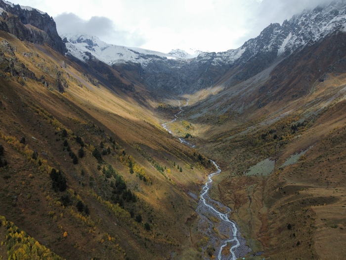 Ущелье и река Терскол. Тропа проложена вдоль таких красот.