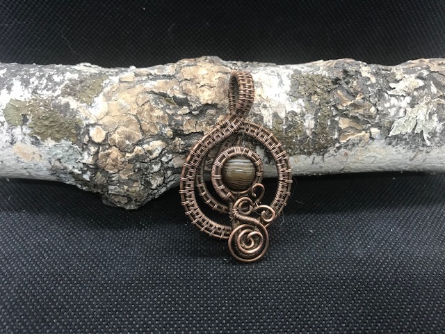 Серёжки из меди в технике Wire Wrap , c пейзажной яшмой