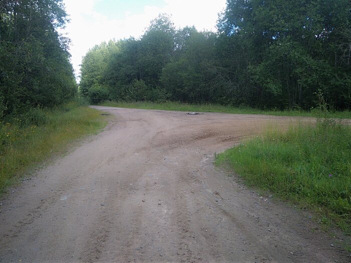 Дальше брусчатка почти исчезает и перестает отравлять жизнь обладателю жёсткой вилки. Чуть более полутора километров и будет перекресток. Прямо дорога идёт в Волоярви и далее, можно до Ладоги доехать. А мне направо. Тут уже брусчатки не видать. Асфальт разной степени ушатаности. Но в общем в плане езды, куда приятнее той, что осталась за плечами.