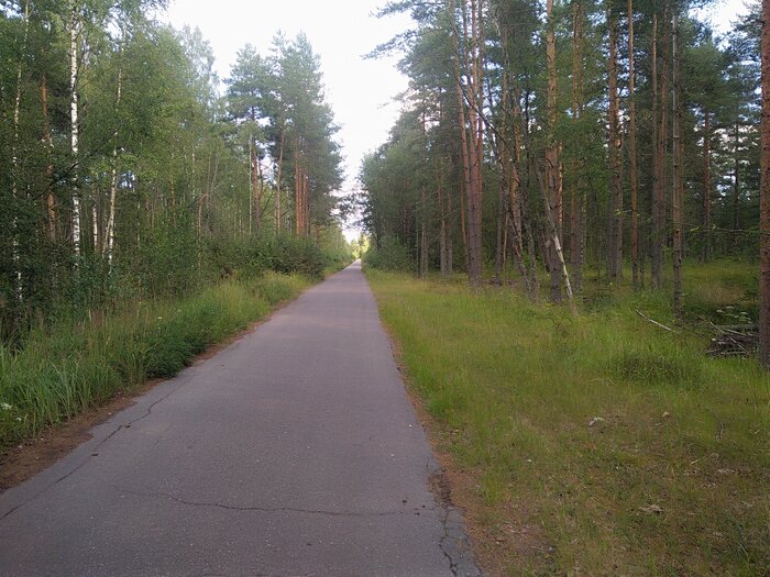 Дальше много вариантов. До вокзала и на электричку. Или через Всеволожск в Ржевский лесопарк. Я же выбрал простой вариант. Дорогой Жизни до Ржевки. И там по Камышинской улице попадаешь прямо в Ржевский лесопарк и вдоль ж/д путей хорошая тропинка выводит прямо к ГАИ на ул.Коммуны.