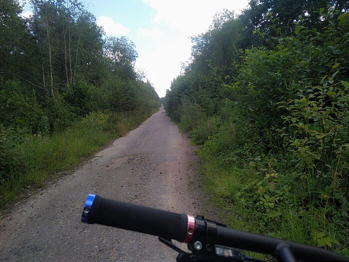 Въезд на территорию полигона. А дальше прямая, как мысли военного человека. И разухабистая, как судьба командировочного специалиста. В общем, я вспомнил почему я раньше на этот маршрут брал подвес или фэт. Брусчатка! Ну и плюс колеса накачанные до "дуба" 3.5 и 3.0 там соответственно. На покрышках 2.125 и ригидной вилке подарили немало зубодробительных ощущений и слегка неуправляемых пролетов. В начале маршрута, чуть в стороне есть старый карьер, где ныне купаются окрестные обитатели.