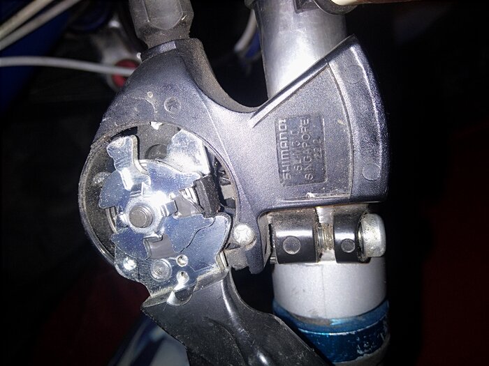 И тут задняя покрышка начала тереть о что-то. Тут-то и всплыло, быстрые спуски по брусчатке не прошли даром и каким-то макаром почти все резьбовые соединения прослабли. И даже крышечка правой манетки покинула меня, что было несомненно грустным открытием. :(