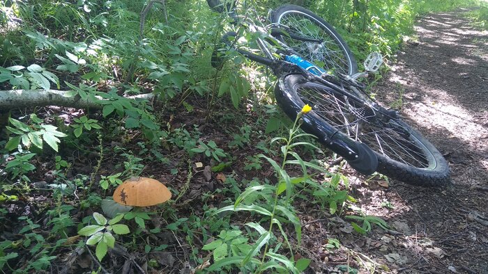 Попив чаю, перекусив и почитав с часик книгу, отправился дальше в путь. Вниз на дорогу, собрав по пути отличный подосиновик, в надежде далее найти и его собратьев.