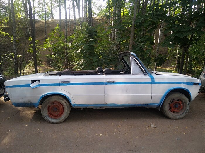 Там среди многочисленных авто купающихся попался прикольный кабриолет. Учитывая, что усилений там никаких нет, а выглядит он гниловато. Можно ожидать что оно сложится в любой момент ) но номера есть. ТО и страховка... Не уверен ;)