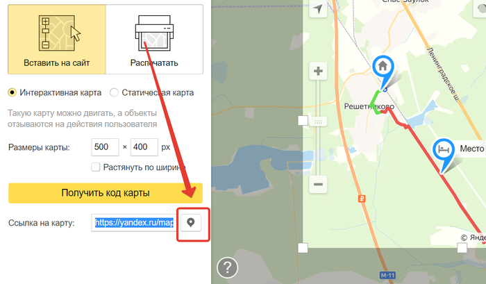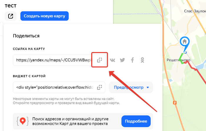 4) И вот уже отсюда копируем ссылку на нашу карту!