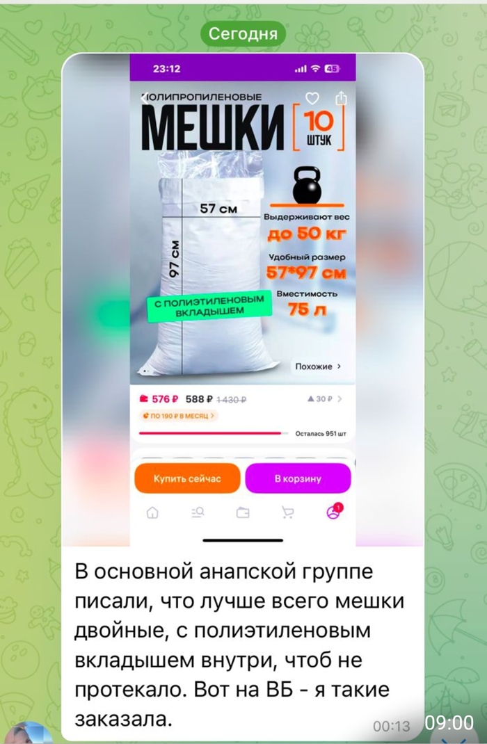 Два замечательных человека откликнулись и сказали, что отдадут мешки бесплатно. Много мешков. Но их нужно до нас доставить. Сейчас решается этот вопрос. Вопрос времени.