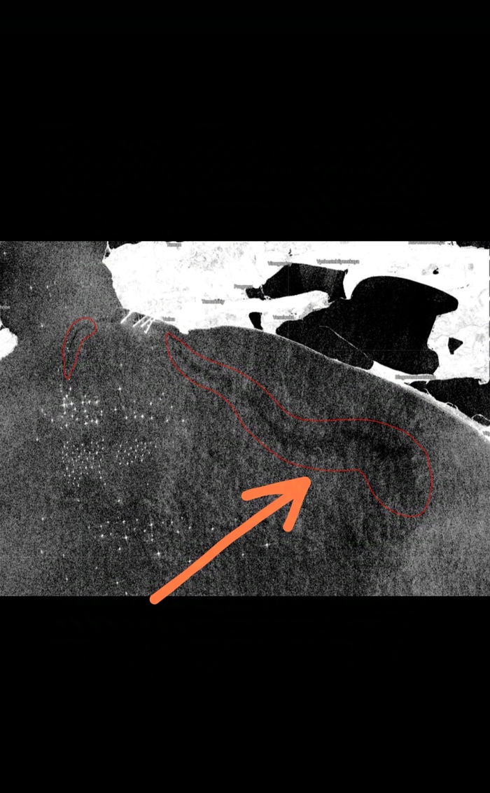 Два пятна в море. 22.12.2024 ветер юго-западный. Надеемся, что успеют поставить боновые заграждения.