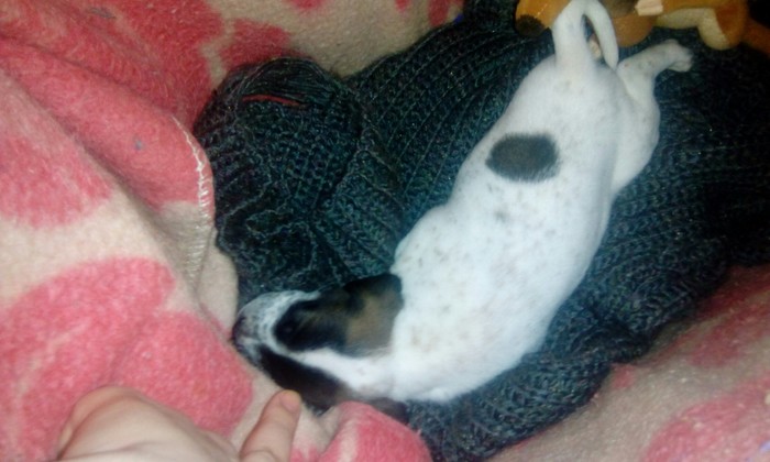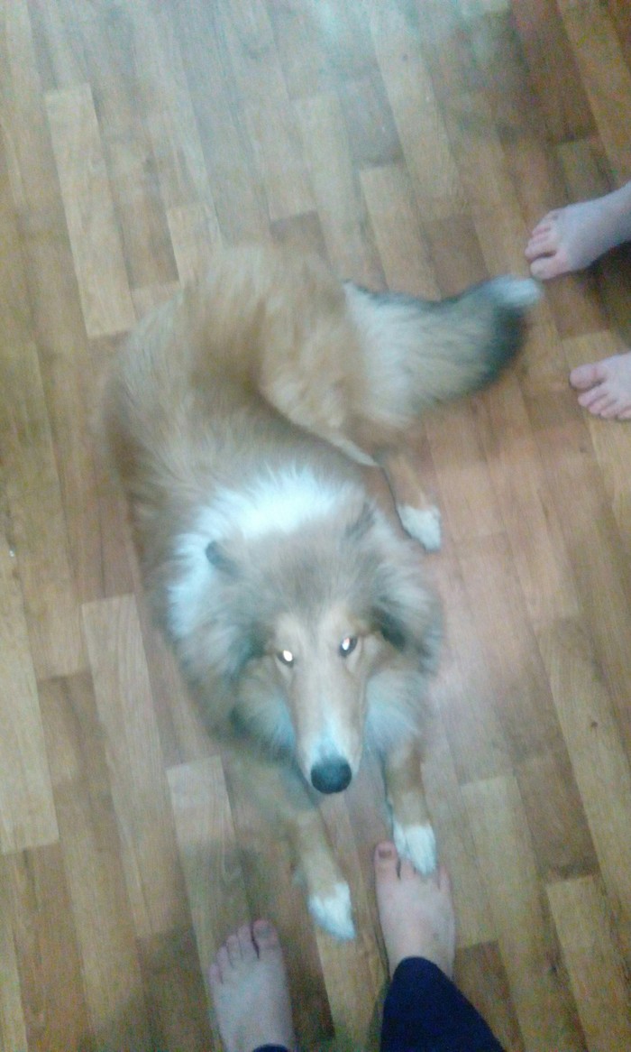 Это Санчо, он появился у нас недавно, около полугода назад, купили его щеночком) любит валяться пузом кверху, носиться как бешеный и потешки )