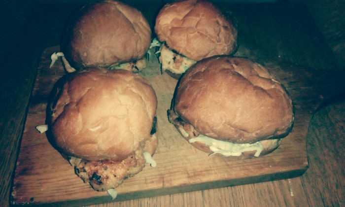 Котлетки из рубленой куриной грудки с луком, в панировке из кукурузной кпупы, обжареные в сливочном масле.