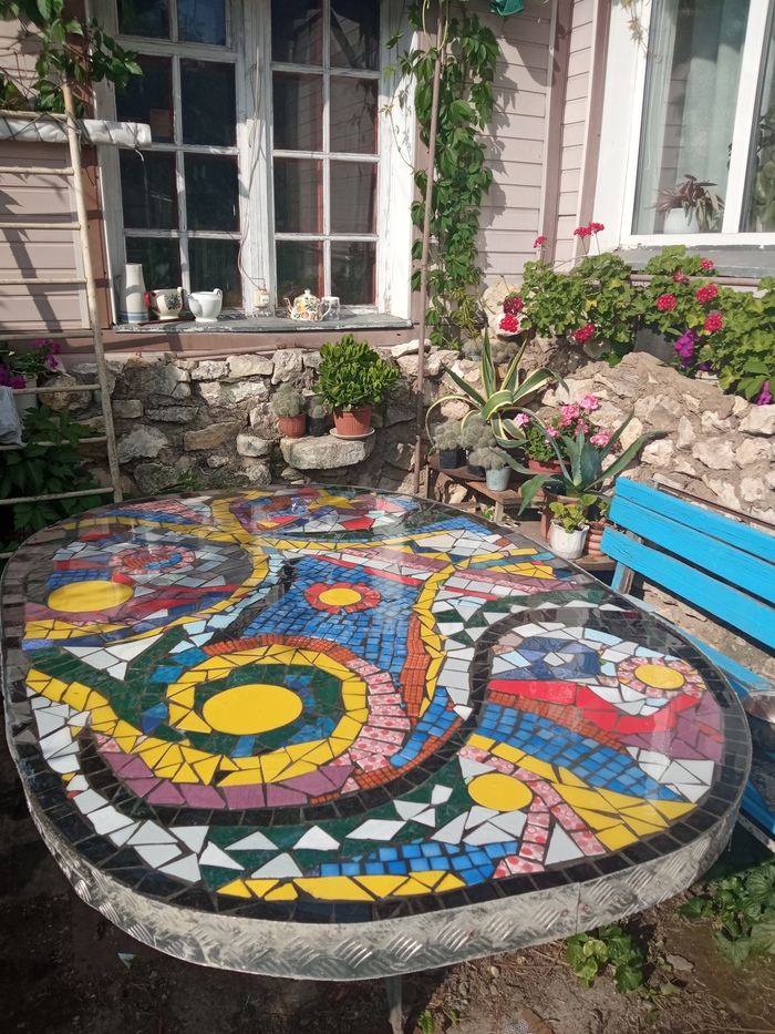 Увлечение мозаикой у моих родителей началось невинно – с одной стены веранды, с которой надо было что-то делать, и большого количества битой посуды, которую было жаль выбрасывать. И тогда мама, вдохновившись творчеством Антонио Гауди, решила сделать мозаику. Вот так, прямо на стене, прямо из битой посуды.