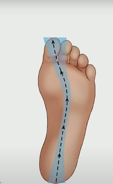 Когда вы ходите босиком, то вы сначала приземляетесь на пятку, потом происходит перекат по внешней стороне стопы и потом на плюснефаланговые суставы. И в финале, толчок происходит в основном за счет первого плюснефалангового сустава и большого пальца.