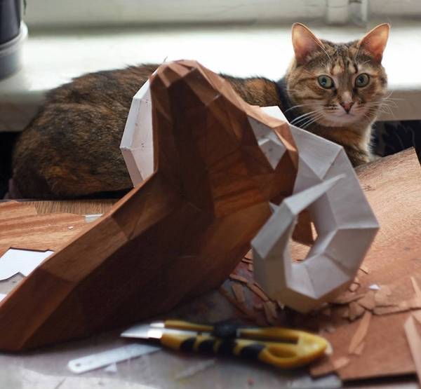 Многие из вас наверняка встречали картинки подобных полигональных скульптур, сделанных из самых разных материалов (эта - самая первая моего исполнения =) ).