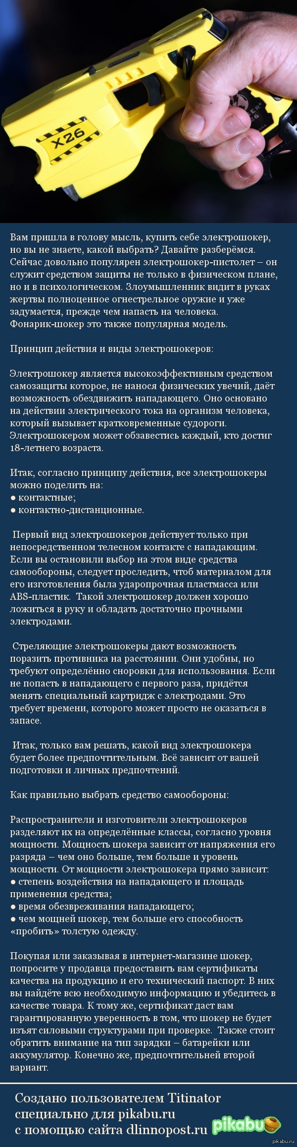 2 Titinator 10 лет назад Выбираем электрошокер Показать полностью 1 [моё] Электрошокер Выбор Длиннопост