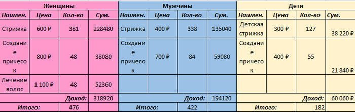 А) Расписываем предполагаемый ассортимент. Обычно, открывая свое дело, человек имеет в этом опыт и с этим пунктом не должно возникнуть трудностей. Если «лезете» во что-то новое – слава всезнающему гуглу. Предположим, что в нашем случае вышло так: Стрижка; Окрашивание; Укладка; Создание причесок; Детская стрижка; Массаж головы; Лечение волос; Ламинирование, Кератиновое выпрямление волос; Наращивание волос; Плетение кос, афрокосичек, создание дред и др.