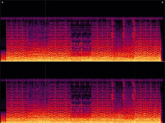 Жёлтый - более низкие частоты, красные - средние , фиолетовые - высокие шипучки всякие, короче бархат :D . Здесь мы видим что в верхнем участке вырисовывается явный предел. в Данном случае 20 тысяч Герц.