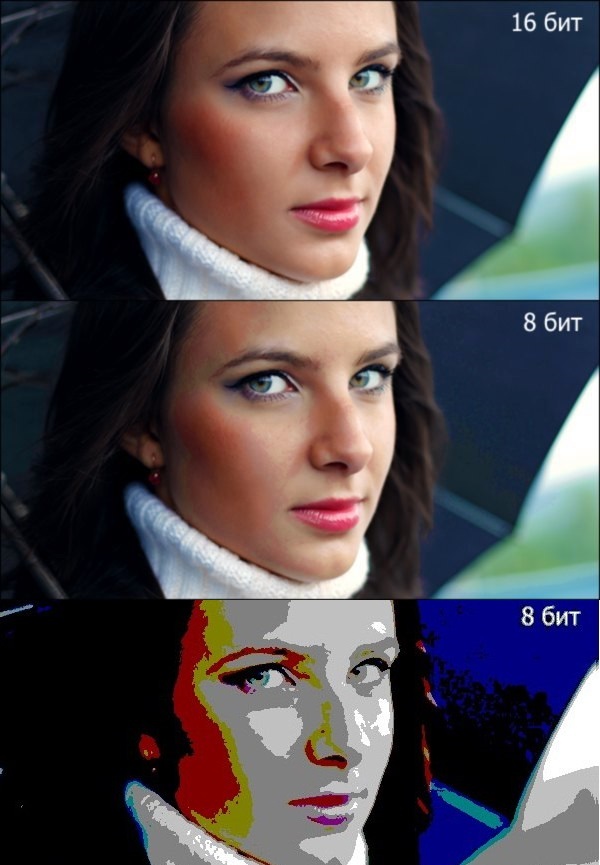 Если вы видите полосы и их разницу, то имейте ввиду, что 16 бит поддерживает 65 миллионов оттенков цветов, но даже это заметно.