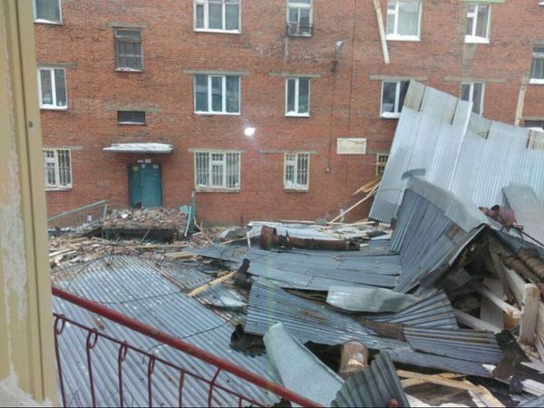 Угол советской и комсомольской кровлю дыбит...почти оторвалась.
