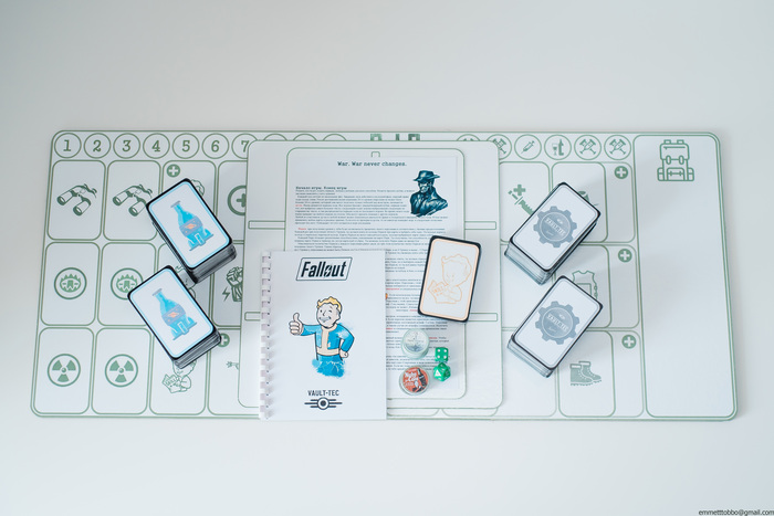 Сев и просто задумав, эдакий, ридизайн Манчкина под Follout, молость увлекся и получилось что-то свое. Собственно, вот: