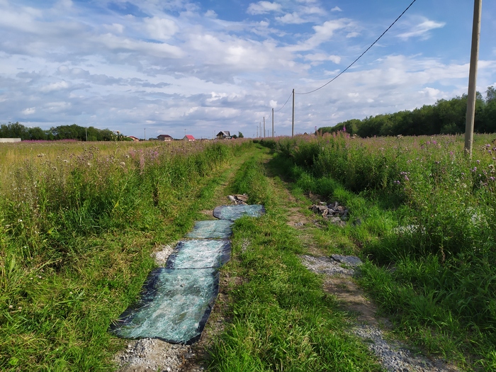 Мда, трасса не очень, но очевидно заметны попытки местных жителей благоустроить инфраструктуру с применением различных материалов дорожного покрытия.