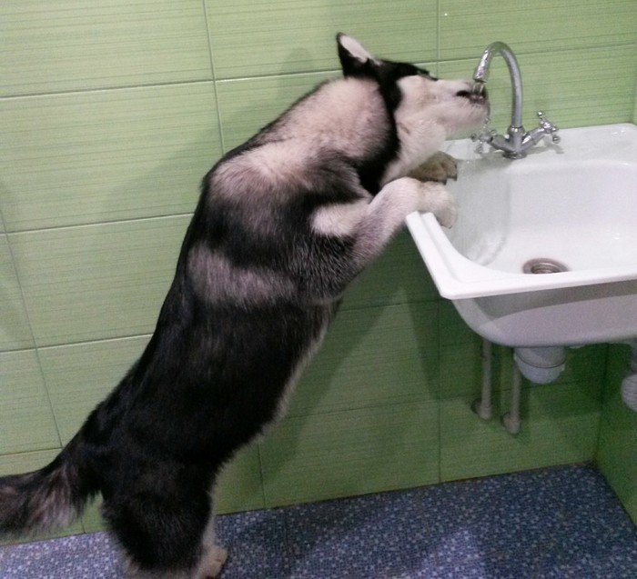 Собачий лайфхак: если не достаешь до стола то можно вот так запрыгнуть на табуретку и пододвинуть ее к столу,что бы стырить какую- нибуль вкусняху.
