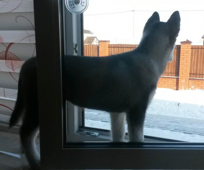 Первый пятиминутный выход на улицу шерстяного волчка.